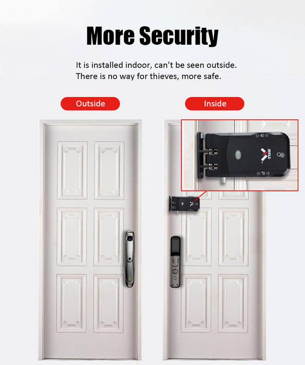 🔒 نامرئی بودن کامل : هیچ قفلی روی درب دیده نمیشود؛ همین موضوع اولین و مهمترین عامل بازدارنده در برابر سرقت است.