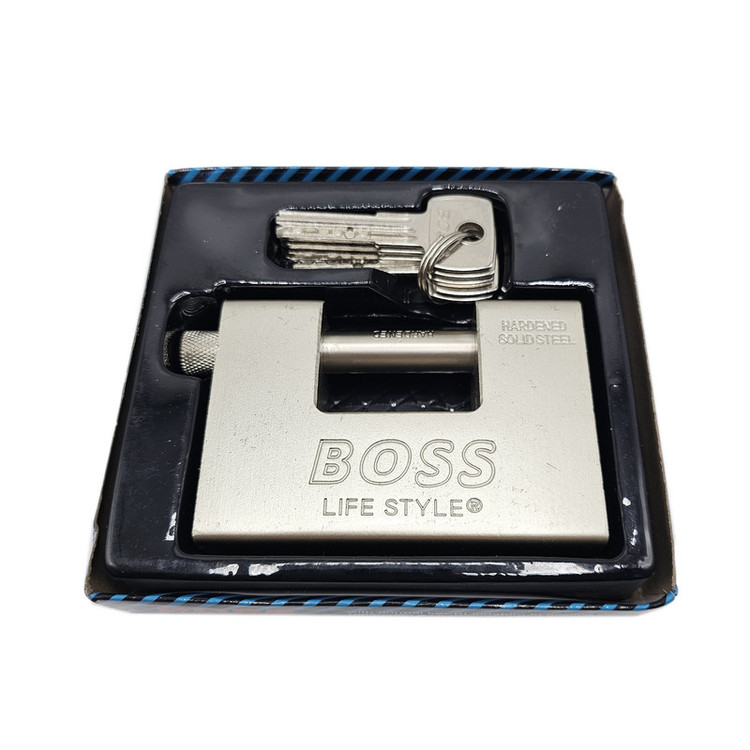 قفل کتابی boss سایز 94 دارای یک بدنه یکپارچه فولادی می باشد مغزی این قفل کاملا برنجی می باشد. میله ی قفل سخت کاری شده و در برابر برش با اره و قیچی ... مقاوم است . مغزی قفل از جنس برنج می باشد که در برابر رطوبت و ساییدگی مقاوم باشد مغزی قفل به گونه ای طراحی شده که کلید های متفرقه داخل قفل نرود . قفل کتابی boss دارای ساچمه قفل شونده از سمت راست میله است این مکانیسم سبب می شود حتی با برش میله با سنگ فرز میله از جای خود در نیاید . این قفل دارای 5 کلید ویژه کامپیوتری می باشد . دهانه قفل 4 سانتی متر می باشد .